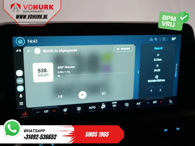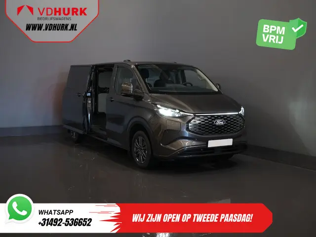 Ford E-Transit Custom 340 71 kWh 218 pk 340 km WLTP L2 Limited 2x Elek.Schuif/ 2.3t Trekverm./ Snellader/ Matrix LED/ B&O/ Adapt.Cruise/ Standkachel/ Carplay/ 360 Camera