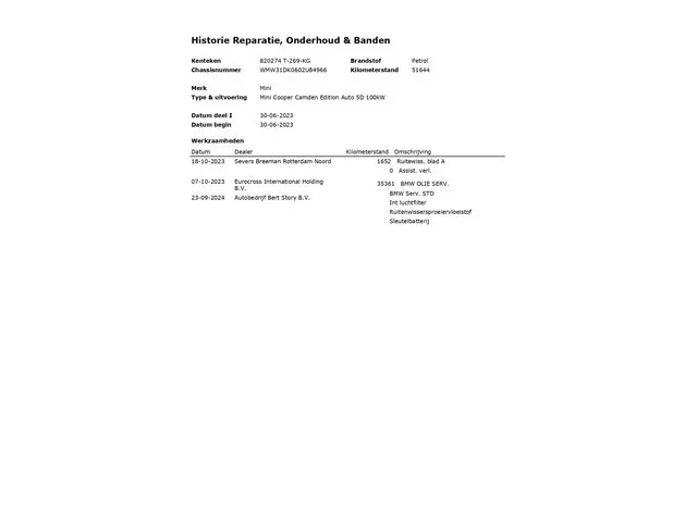 Voertuiggegevens van deze MINI Cooper
