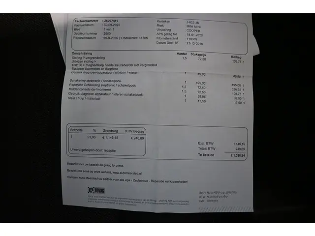 Voertuiggegevens van deze MINI Cooper