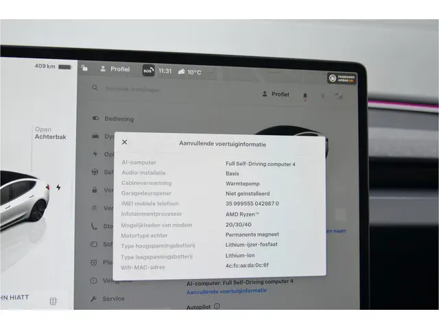 Voertuiggegevens van deze Tesla Model 3